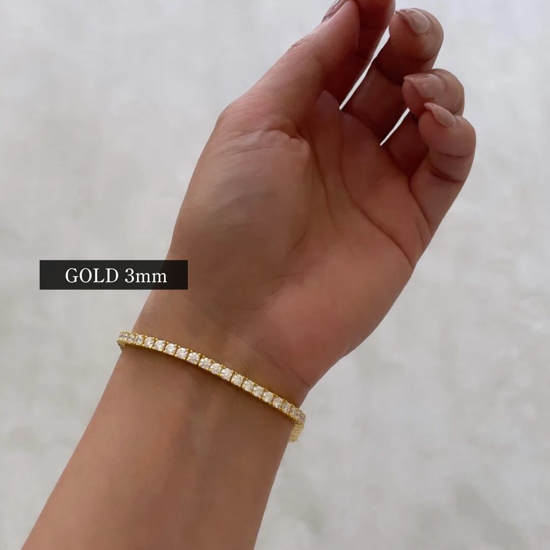 【3mm】ゴールド S925 モアサナイト テニスチェーン ブレスレット ※受注生産