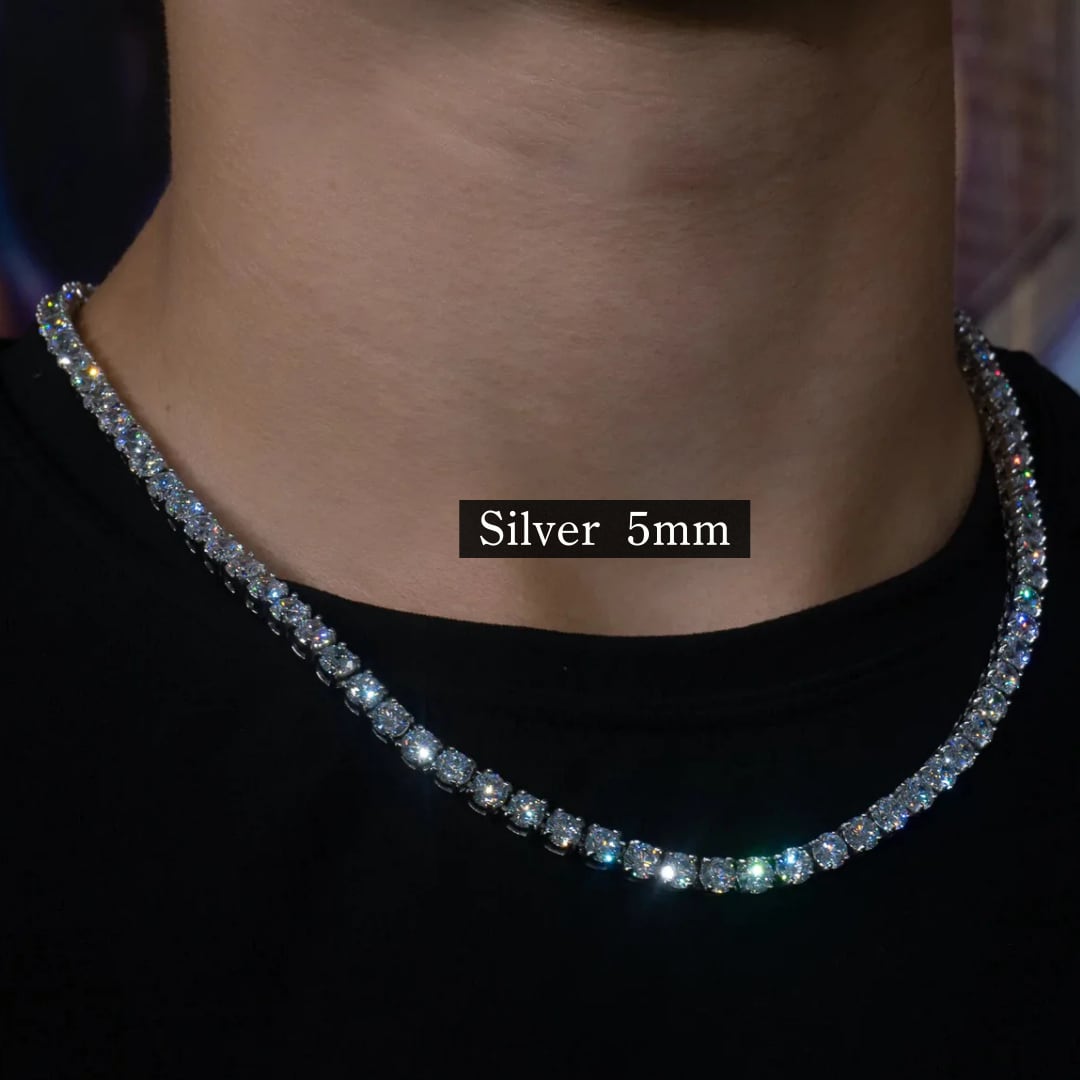 【5mm】シルバー S925 モアサナイト テニスチェーン ネックレス ※受注生産
