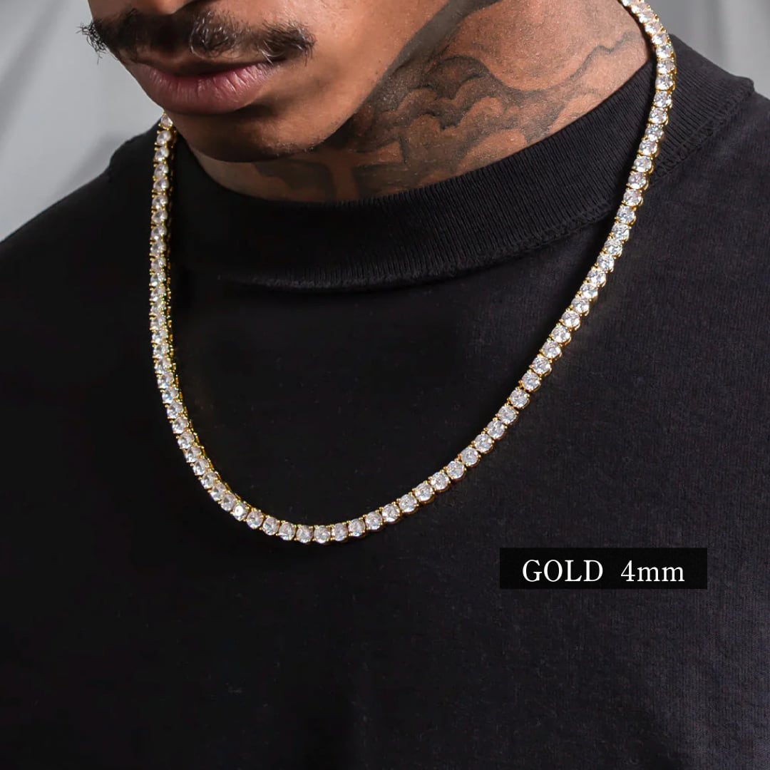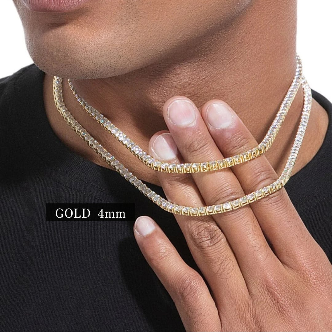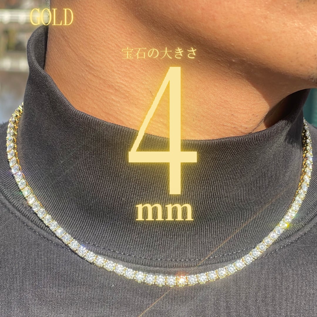 【4mm】ゴールド S925 モアサナイト テニスチェーン ネックレス ※受注生産