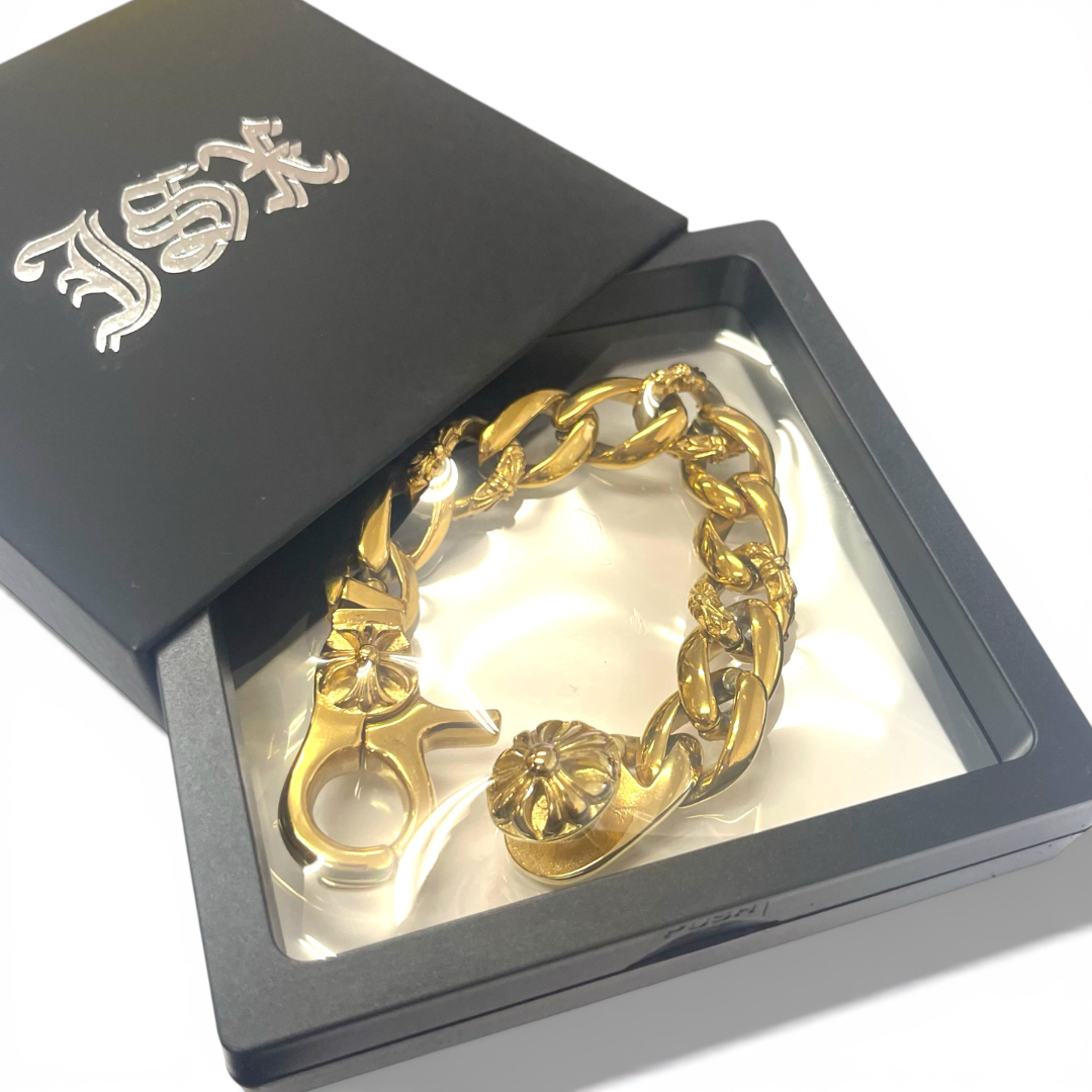 ★すぐお届け★ ゴールド ステンレス チェーン ラグジュアリー ブレスレッド
