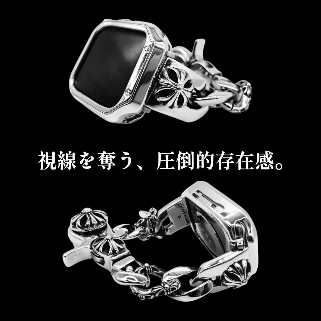 ★すぐお届け★【フックタイプ】シルバー ステンレス ラグジュアリー アップルウォッチ ケース & バンド セット